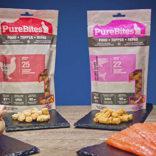 At PureBites, we’re always asking pet parents to “Go ahead, look at our ingredients”. Simplicity and the high-quality ingredients we choose to feed our family makes a difference. At PureBites this means every member of our family. PureBites RAW freeze dried chicken recipe is the ultimate single protein source, limited ingredient cat food, mixer, or topper. Made with only 25 simple human grade ingredients you can read, pronounce, and trust: 97% pure chicken and 3% essential vitamins, minerals, & natural preservatives. Nothing else. No artificial colors, fillers, or sweeteners. Proudly sourced and made in the USA using a delicate freeze drying process that helps preserve fresh RAW whole food, locking in the taste cats crave and the high protein / low calorie nutrition that pet parents love. PureBites freeze dried chicken recipe can be fed as a complete & balanced cat food or as a compliment to a RAW diet since it retains many of the benefits of RAW without the hassle of refrigeration.