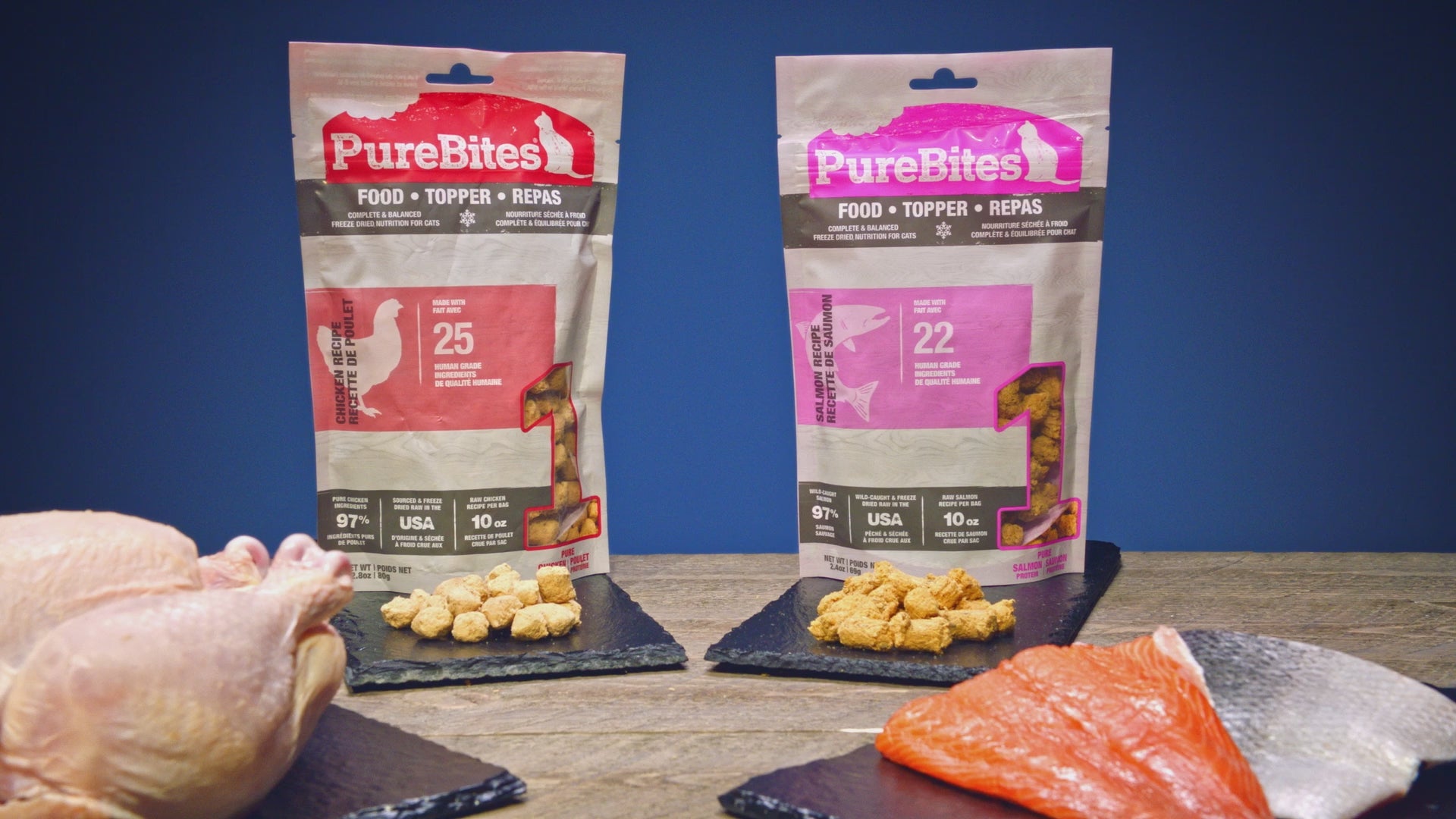 - Go ahead, look at our ingredients; made with only 25 simple human grade ingredients: 97% pure chicken and 3% essential vitamins, minerals, & natural preservatives; PureBites chicken recipe is sourced and freeze dried in the USA, then packaged and perfected in our very own Canadian kitchen; it can be fed as a complete & balanced food, mixer, or topper for your cat