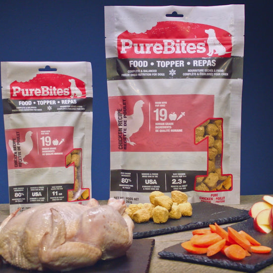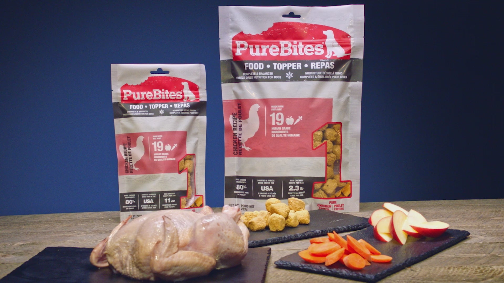- In an effort to do our part, PureBites freeze dried food or toppers are packaged in recyclable bags that we can recycle today for a better tomorrow. All PureBites treats, food, mixers, and toppers are always backed by our 100% money-back satisfaction guarantee