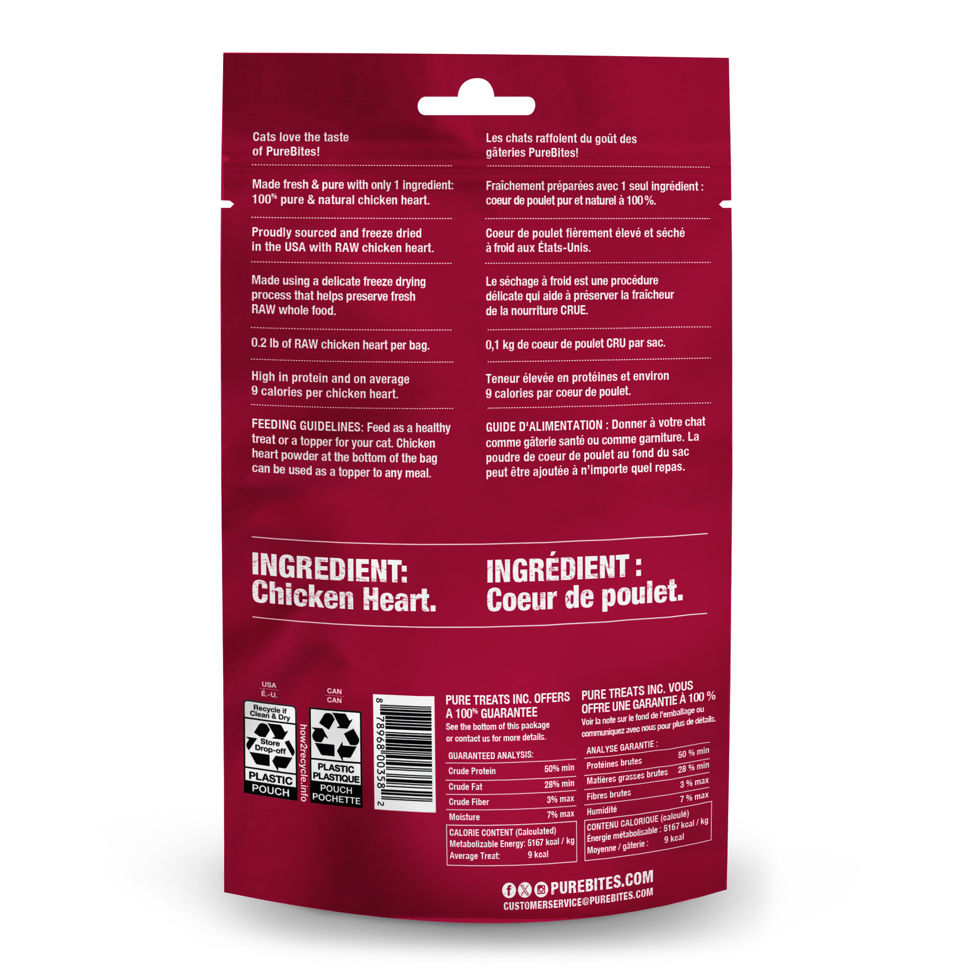 - Go ahead, look at our ingredients; made with only 1 simple human grade ingredient: 100% pure chicken heart; proudly sourced and freeze dried RAW in the USA; a great high-value treat or topper for your cat